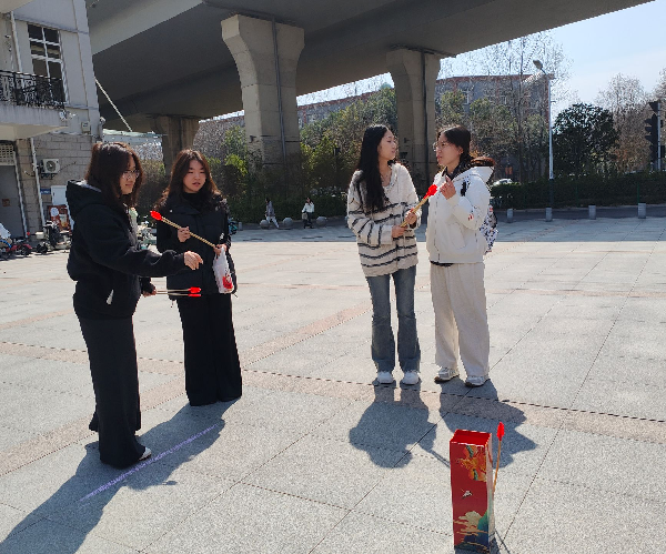 3月13日上午,支部在西区学生生活广场举办”‘权’力出击·’益’趣横生”主题游园会。活动采用”闯关集奖”机制,将《中华人民共和国消费者权益保护法》核心条款融入传统投壶游戏,寓教于乐。现场设置”正义之’箭’“游戏区,参与者通过答题赢取游戏机会,在轻松氛围中学习”七日无理由退货”“退一赔三”等实用法律知识。