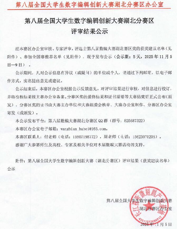 我院“商情视界:AI赋能下企业商情视频快报服务模式探索与实践”省级大学生创新创业项目团队,以跨学科协作探索AI赋能商情服务新模式,在网络与新媒体专业樊国庆老师指导下稳步推进项目建设,不仅完成服务体系搭建与种子客户布局,更凭借项目成果斩获第八届全国大学生数字编辑创新大赛湖北分赛区三等奖,并参加中国国际大学生创新大赛(省赛),以赛事历练打磨项目、锤炼能力,成为“以赛促学、以创育人”的典型实践案例。