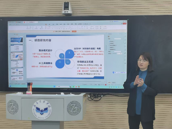 项目推进中,学生们从企业访谈、流程打磨到市场验证全程参与,在AI工具应用、服务方案迭代、客户需求对接等实战中,锤炼了商业洞察、技术应用和团队协作能力;而学科竞赛的备赛过程,更让团队针对性优化了项目逻辑与展示内容,最终收获竞赛奖项。樊国庆老师全程护航,通过常态化沟通、针对性指导,助力团队破解难题,成功完成商情视频快报制作,启动种子客户计划。