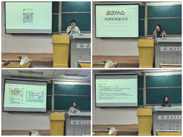 致辞结束后,各家企业依次上台开展宣讲推介,详细介绍企业发展历程、业务范围、企业文化、人才培养体系及本次招聘的具体岗位信息。本次招聘会共邀请晟璟传媒、安特杰优特教育培训学校、亿学科技、新东方武汉培训学校、本墨(武汉)科技有限公司、广州新东方少儿班课、武汉猫人云商科技有限公司等7家优质企业参会。各家企业结合自身发展需求,带来了丰富多元的岗位选择,涵盖直播运营、摄影视频编导、新媒体运营、少儿培训老师、演讲讲师、校园实习生等数十个岗位。宣讲过程中,部分企业代表结合自身从业经历与行业发展现状,为毕业生们分享实用的职场经验,给出针对性的职业规划建议,帮助学子们明晰就业方向、提升求职认知,让大家对岗位适配度、职业发展前景有了更清晰的了解。