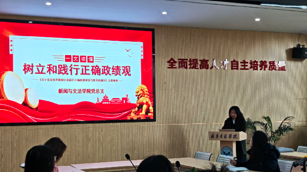 为深入贯彻落实党中央及武昌首义学院关于树立和践行正确政绩观学习教育的工作部署,切实引导学工党员筑牢思想根基、强化责任担当,3月13日,新闻与文法学院党总支在院办405办公室组织全体学工党员开展树立和践行正确政绩观专题学习。党总支书记杨芳主持会议并作专题授课。